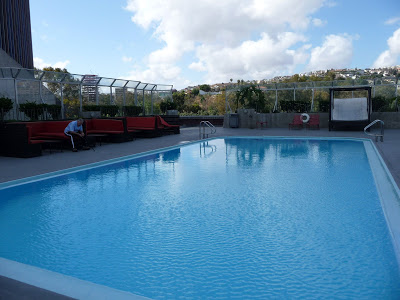 The breakfast buffet was delish! A well-maintained tennis court awaits you. There’s a sparkling Jacuzzi with a view of Tijuana streets and business below and a beautiful pool area, that looks up at the mountains.